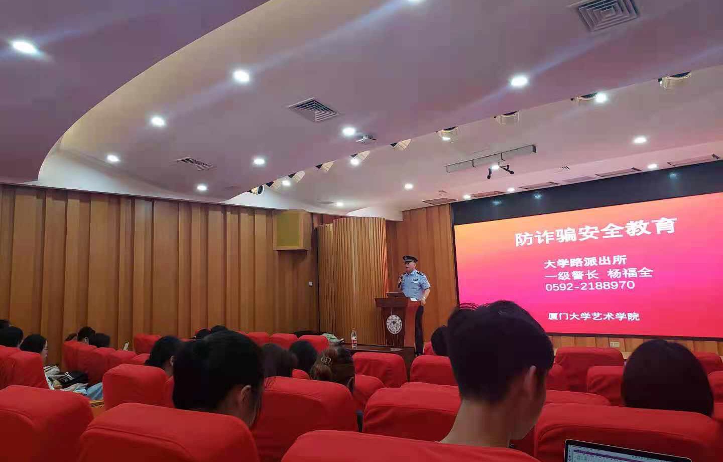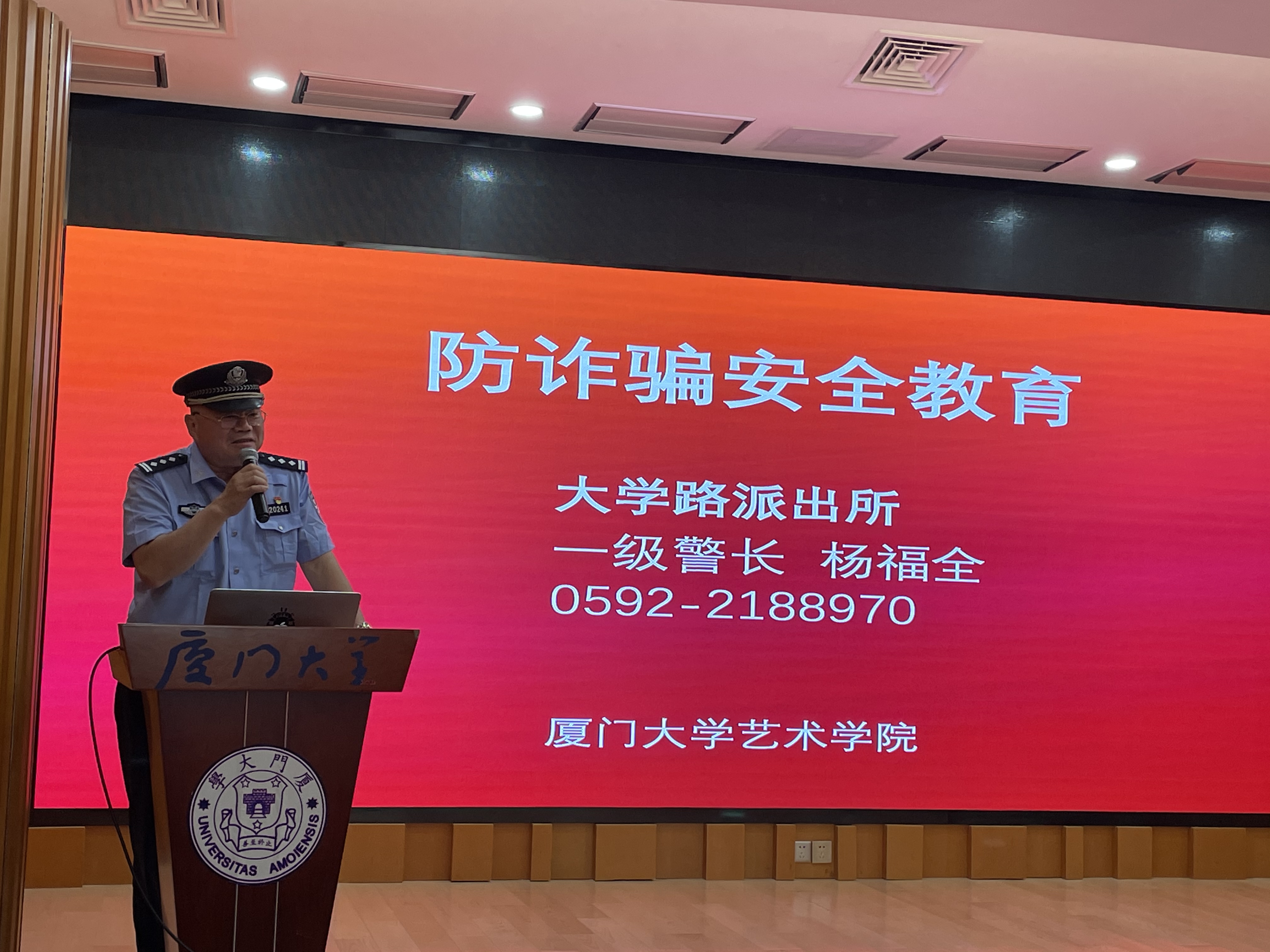 为进一步提大学生防诈骗意识,增强防范诈骗能力,7月8日上午,“大学生防诈骗安全教育会” 在艺术学院小音乐举行,大学路派出所民警杨福全为同学们做专题报告。