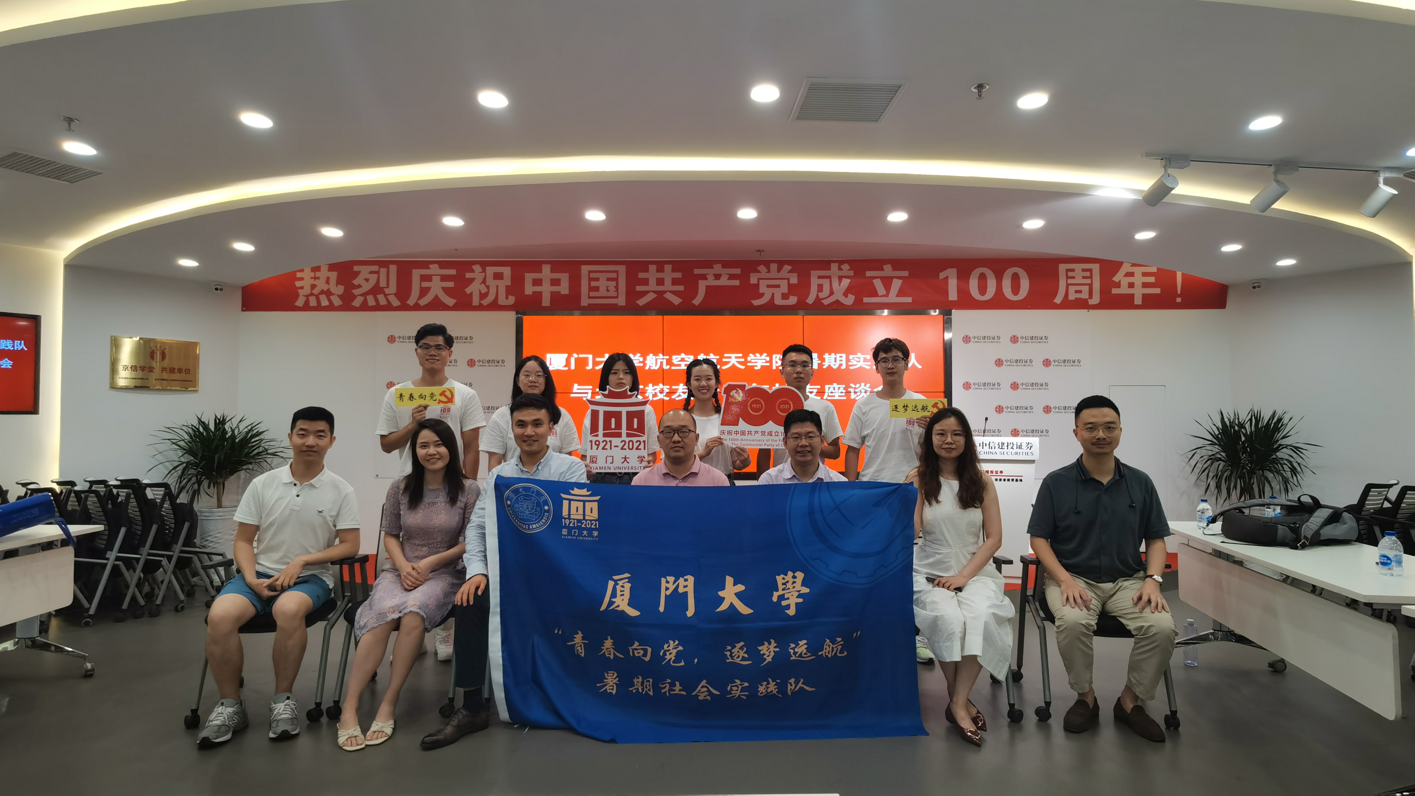 实践队分别与清华大学航天航空学院学子、厦门大学北京校友会青年校友展开座谈交流。清华大学座谈会主要围绕两校航空航天教育的发展历史和党建工作进行,两校学子共同学习习近平总书记关于青年工作的重要论述,交流心得体会,对习近平总书记重要讲话精神的理解和党团工作的实施有了新的感悟和启发。在和校友的座谈中,实践队听取校友分享的工作经验和人生经历,就未来的职业选择和人生规划向校友们提问,校友们一一答疑解惑,进行深入交流。张晴总结到,“我们组织此次实践的目的就是希望研究生同学们可以走出实验室、走向社会,希望队员们能够带着交流的收获,不断观察思考,积累相应的知识以促进自身发展。”