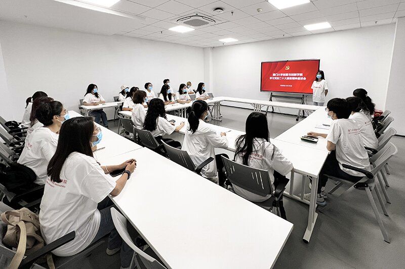 辅导员徐玮辰说,作为青年教师党员,在收看了党的二十大报告后,我感到十分激动。习近平总书记在报告中强调,广大青年要坚定不移听党话、跟党走,怀抱梦想又脚踏实地,敢想敢为又善作善成,立志做有理想、敢担当、能吃苦、肯奋斗的新时代好青年,让青春在全面建设社会主义现代化国家的火热实践中绽放绚丽之花。作为一名青年教师党员,我有幸在这所与党同龄的大学从事我热爱的教育事业。我会始终坚持立德树人的根本任务,以习近平新时代中国特色社会主义思想铸魂育人,在实干中“自找苦吃”,积极践行一线规则,严管厚爱善导,做学生为学、为事、为人的示范,将个人的职业成才梦和厦大“双一流”建设梦、祖国伟大复兴的中国梦结合起来,努力写好新时代的答卷。