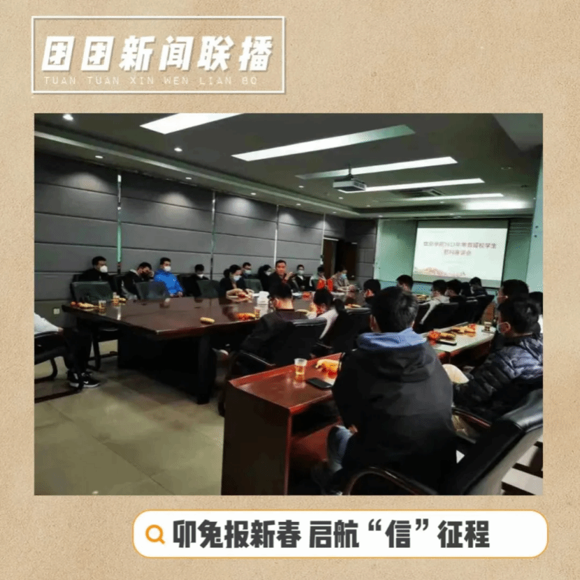 1月13日下午,材料学院在圣诺楼308会议室举办“瑞兔迎新,贺岁新年”留校学生迎新春茶话会。来自五湖四海的同学们互致新年问候,畅谈感想,气氛热烈。他们讲述了自己的寒假规划,并对学院的关心慰问表示了感谢。
