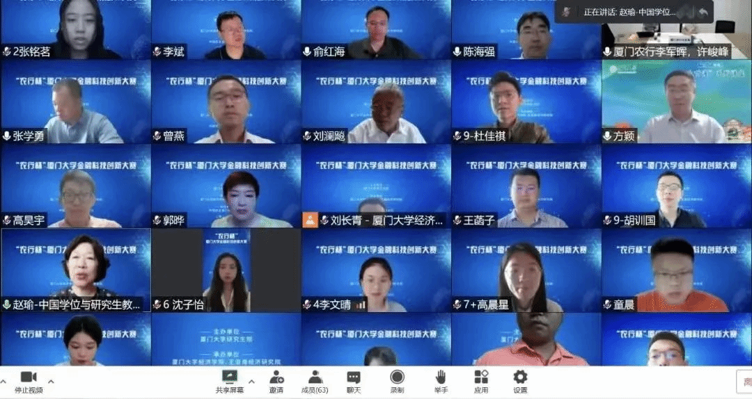 9月4日,“农行杯”第一届厦门大学金融科技创新大赛决赛成功举行。决赛采用专家线上评审,参赛团队线上答辩的方式进行, 经过激烈角逐,在创新创意赛道“RSD智能应用”团队荣获特等奖,在算法挑战赛中“莫道仓于满”荣获特等奖。