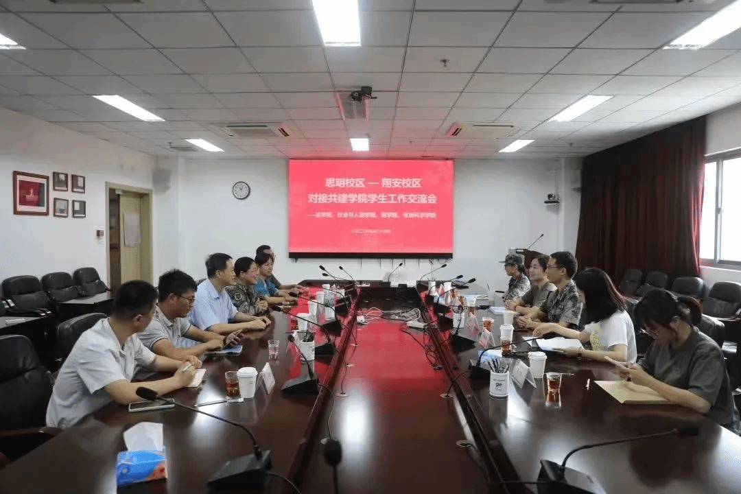 9月26日,思明校区、翔安校区部分学院在生命科学学院黄朝阳楼B403会议室召开了对接共建学院学生工作交流会。会上翔安校区党委副书记张宇斌对到访的各院老师赠送了生物学科百年画册,各方均希望和对接共建学院加强交流,强化合作,促进学生工作内涵式发展。