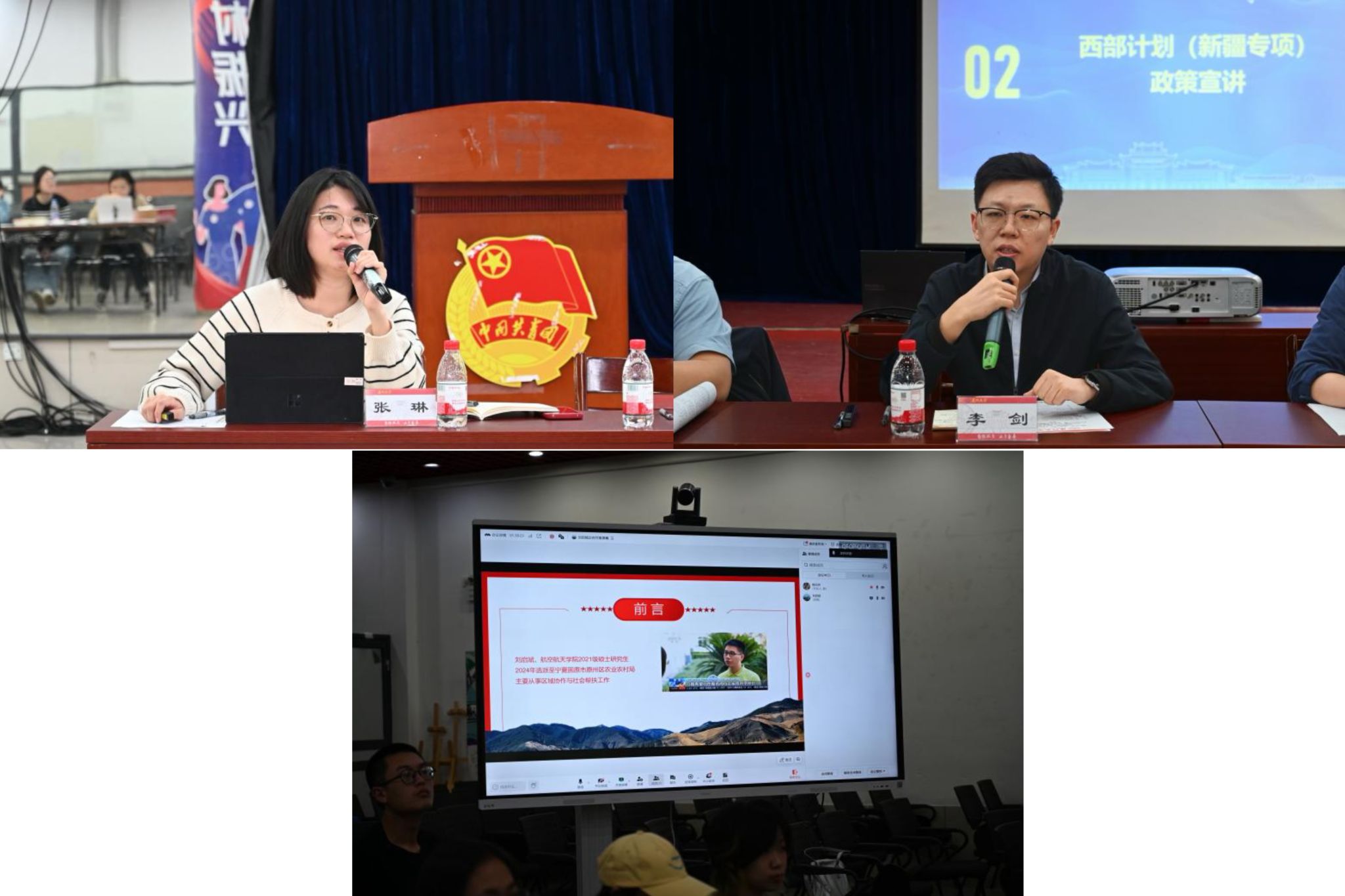 校团委组织部主任张琳首先对西部计划、乡村振兴计划、研究生支教团的政策进行了详细解读,她鼓励同学们用脚步丈量山河,以奋斗书写青春,将个人理想融入国家发展的壮阔蓝图,展现厦大学子自强不息的奋进面貌。