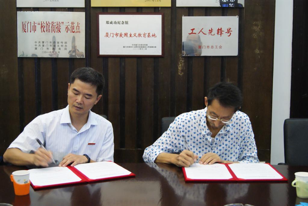 签约仪式上,郑成功纪念馆馆长陈洋详细介绍了郑成功纪念馆建设情况。纪念馆是中宣部命名的首批“全国百家爱国主义教育示范基地”,国家国防教育办公室授予“国家国防教育示范基地”。张明智表示,在郑成功纪念馆建立思政教育基地,就是要弘扬郑成功收复台湾,维护祖国的主权和领土完整的伟大事迹,教育引领青年学生树立爱国精神和民族精神。双方共建思政教育基地,是资源共享,优势互补,一定会取得1+1>2的效果。同时,这也是学院深入贯彻落实全国思政工作会议精神,创新思政教育模式的重要举措,是学院“两学一做”常态化制度化工作又一新载体。今后,双方将发挥各自优势,深入挖掘郑成功爱国精神和陈景润科学精神之内涵,互相学习,共同传承,开展形式多样的爱国主义教育和主题实践活动,为鼓浪屿这一宝贵的世界文化遗产增光添彩。