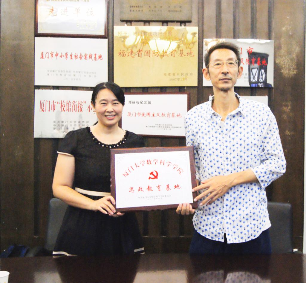 数学科学学院向郑成功纪念馆赠送了《老教授谈厦大“四种精神”》、《铸梦》图书和话剧《哥德巴赫猜想》光盘。郑成功纪念馆回赠了《郑成功纪念馆文物史迹图册》及光盘。