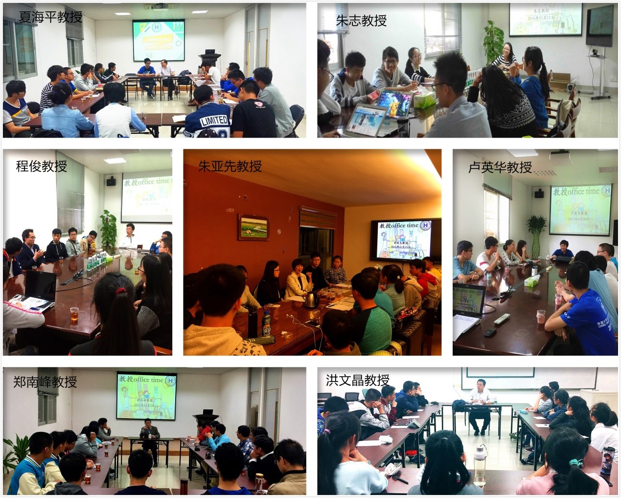 教授Office Time是由江云宝院长首倡,学院近年来开展的师生互动交流活动,迄今已经成功举办了10多期。仅本学年就先后邀请了夏海平、朱志、朱亚先、郑南峰、洪文晶、程俊等不同研究领域,不同年龄层次的学院骨干教授参加活动,深受学生欢迎,通过易班抢票直接参加人数达到150多人。通过师生们面对面的深入交流,谈学习、谈科研、谈人生、谈理想,既促进师生互动,也增进了师生感情;既解答同学们在学业和生活中的困惑,也帮助解决了同学们思想上的问题;既探讨人生感悟和发展,也让同学们了解到最新科研成果和学术动态,极大地提高了他们学习的热情和积极性。让老师们以自己的人格魅力引导学生心灵成长,以学术造诣开启学生的智慧之门。
