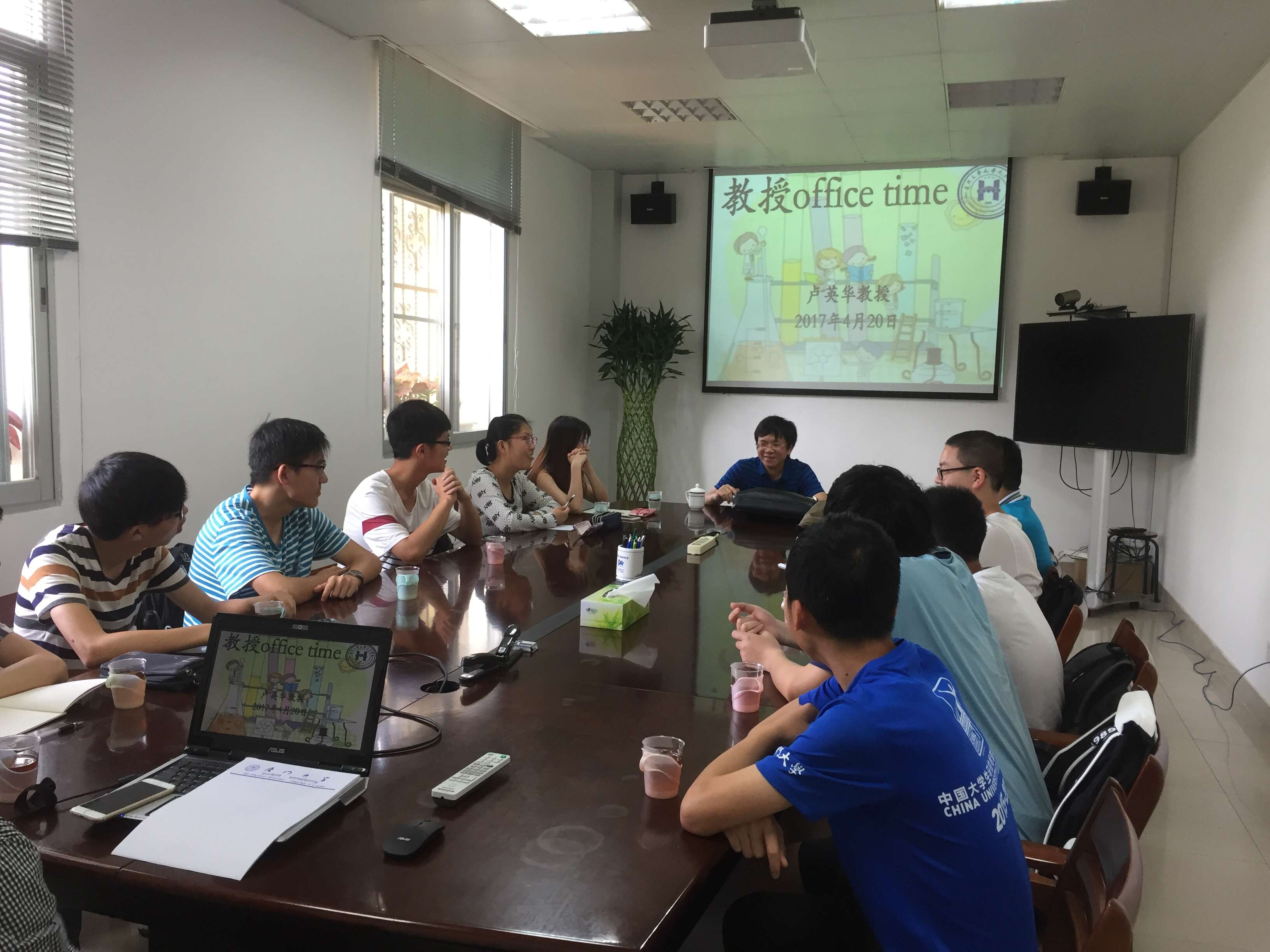 4月20日上午,学校思想政治工作会议一结束,卢英华教授就匆匆赶到同安二201会议室,主持化学化工学院本学年第七期“教授Office Time”活动,与本科2016级化工3班学生,围绕同学们最感兴趣的专业学习、大学生活以及就业发展等方面的话题而展开交流畅谈。