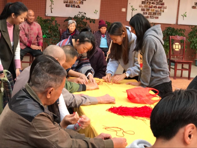 今天恰逢集美大学诚毅学院的一批同学前来看望老人们,并教老人们做中国结。于是我们的成员也同他们一起学习,并将做好的中国结一一送给老人。大家的动作虽然不熟练却满是真诚。最后,所有成员一起合影留念,在温馨欢乐的氛围中结束了此次敬老院之行。