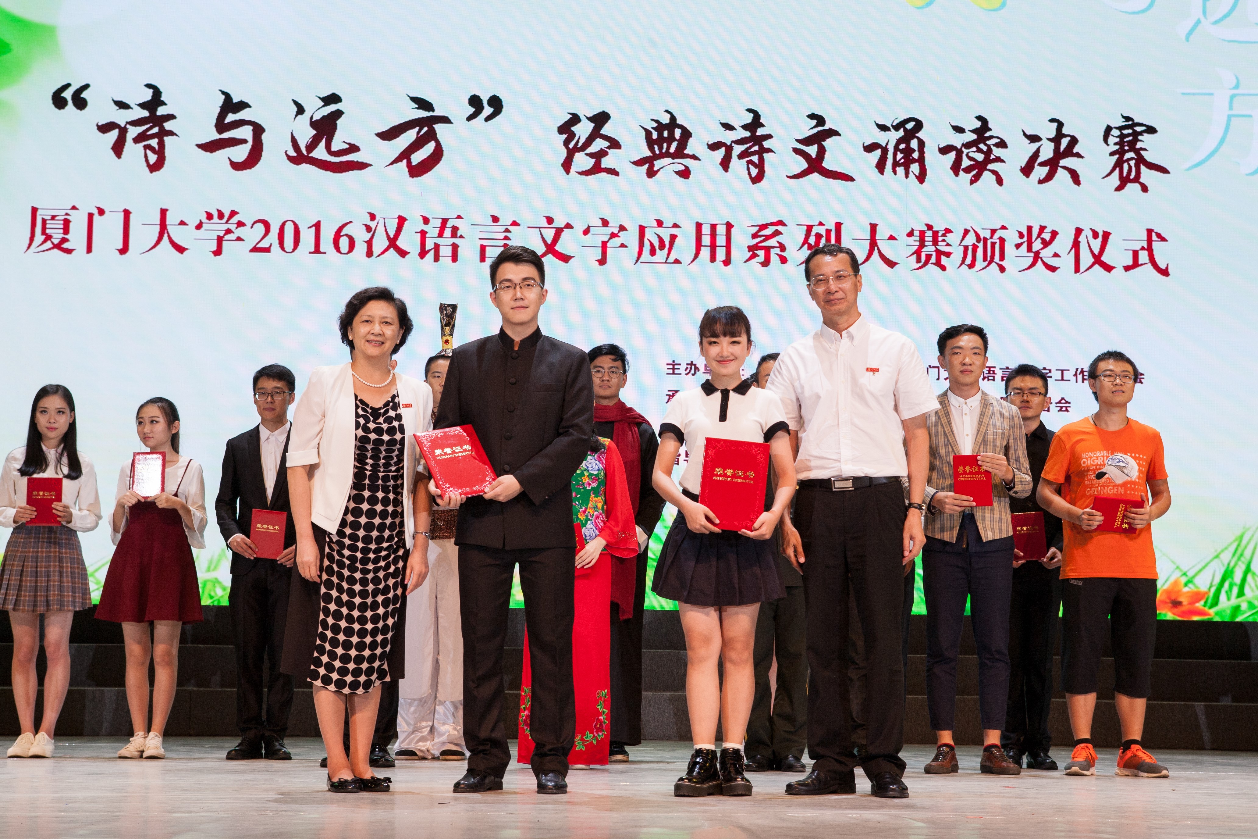 10月16日晚,厦门大学2016“诗与远方”经典诗文诵读大赛总决赛暨汉语言文字应用能力系列大赛颁奖仪式于在建南大会堂举行。校党委副书记、纪委书记赖虹凯,副校长詹心丽出席活动。经过层层筛选,最终来自全校各学院的16名选手参加决赛。