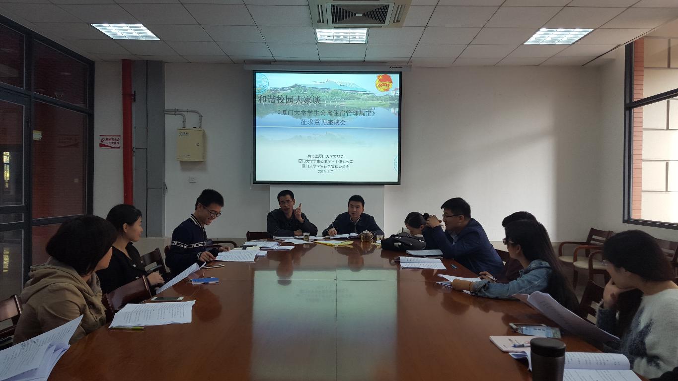 《厦门大学学生公寓住宿管理规定》旨在规范学生住宿管理,培养住宿学生优良品德和良好作风,保障住宿学生正常的住宿、学习和生活秩序,与同学们的切身利益相关。据悉,此前执行的“旧规定”已实施十年有余,部分规定已不适于我校宿舍现状,因此为适应当前形势,切实维护广大同学的需求和权益,在新规定正式审议通过之前,特此召开座谈会,广泛听取学生诉求,积极完善相关制度,发挥了广大同学的主观能动性,培养广大同学自我服务、自我管理的主人翁意识。