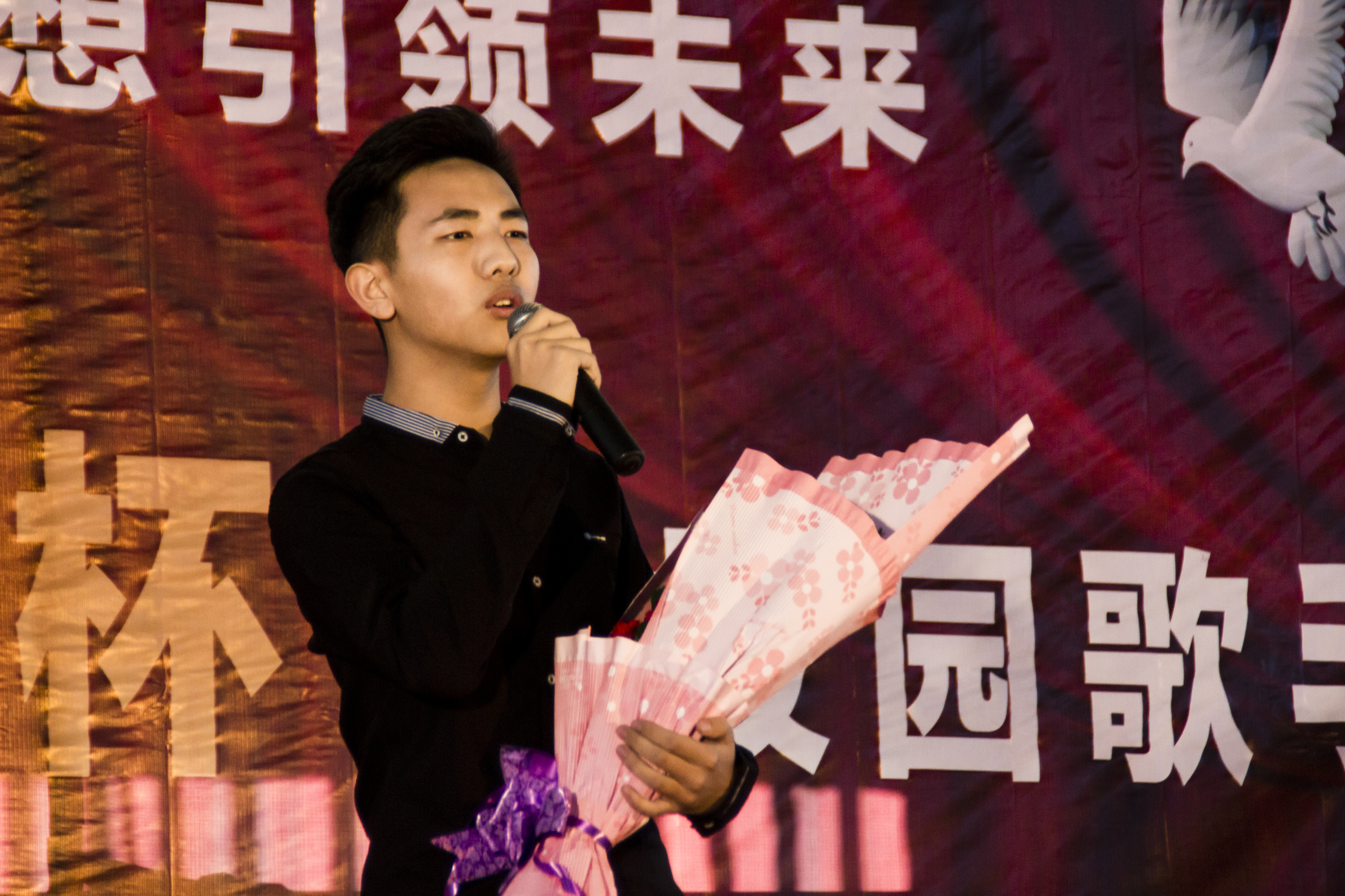 决赛在一首《轻轻地告诉你》甜甜的声线中拉开序幕,随后,《如果有来生》、《明天会更好》、《我的歌声里》慢慢点燃了比赛的氛围,选手们的歌声时而婉转动人,如山涧中的潺潺流水;歌声时而激情澎湃,如大海的滚滚浪花;歌声时而忧郁悲伤,如林黛玉望月伤悲,看花坠泪……引得台下掌声此起彼伏。比赛中场,我校支教团队员周禹同学和政史地组的陈兴龙老师带来的一首《朋友》,他们充满激情与磁性的声音,引得场下的师生纷纷举起双手跟着节奏左右摇摆。比赛在《我爱你中国》浓浓的爱国之音中渐渐进入了尾声。最后,音乐组王永健老师和他的学生用一首《我相信》将全场的气氛推向最高潮。整场比赛高潮迭起,精彩纷呈,完美地展现了青春的最强音。