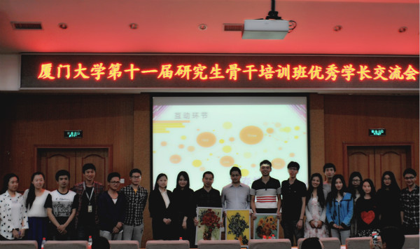 4月25日下午,我校第十一届研究生骨干培训系列活动之优秀学长学姐交流会在化学报告厅顺利举行。此次交流会邀请到了三位往届优秀的学长作为主讲嘉宾,他们分别是曾任校学生会主席,现任物理与机电工程学院副教授的郑高峰;曾任校第18、19届研究生会副主席,第4届博士生分会主席,现任海洋与地球学院助理教授的陈友淦;曾任环境与生态学院研会主席、现任华润燃气有限公司2014级管理培训生的郭涛。