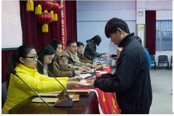 仪式开始时,支教团宁夏分队队长尹思文首先对我校研究生支教团在宁夏的支教历史及成果做了简要介绍。随后,本届支教团海原一中助学负责人孙轶对资助款项的主要来源作了具体说明。之后学生按班级次序依次走过讲台领取助学金并且确认签字。