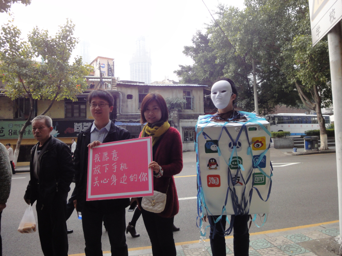 约半小时后,在团队成员大声的口号:“我愿意放下手机,关心身边的你。”中,活动圆满结束。