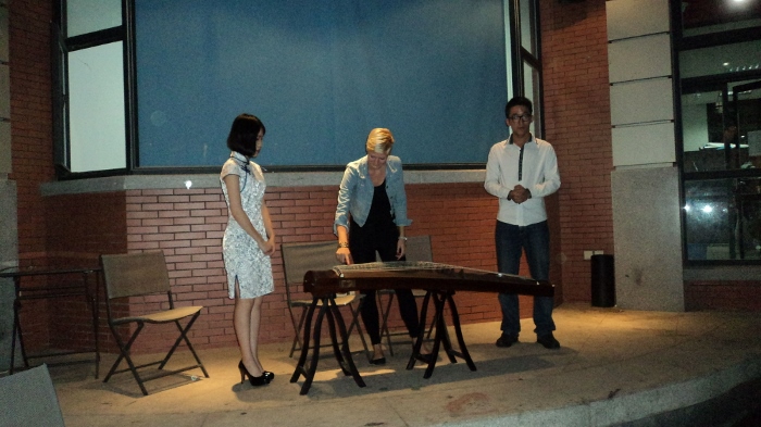 在现场互动环节中,演奏者先向大家介绍了所演奏乐器的基本知识,再邀请外国留学生上台亲自弹奏乐器。一位外国留学生兴奋地告诉大家,她最感兴趣的就是古筝,而这次活动恰恰给她提供了一个亲密接触古筝的机会。