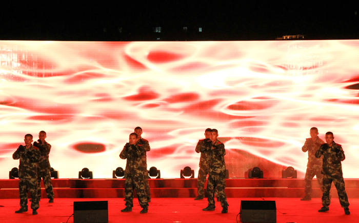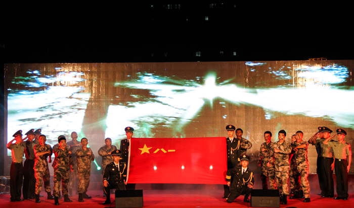 在晚会正式开始前,现场播放了一系列以军旅生活为主题的宣传片,并用微博墙和现场观众展开互动。晚会刚一开始,身着军服的主持人就展现了军人英姿飒爽的形象。第一个节目歌舞《当兵光荣》则用阳刚的舞蹈动作和简洁直白的歌词向广大青年发出了加入军营奉献青春的号召。
