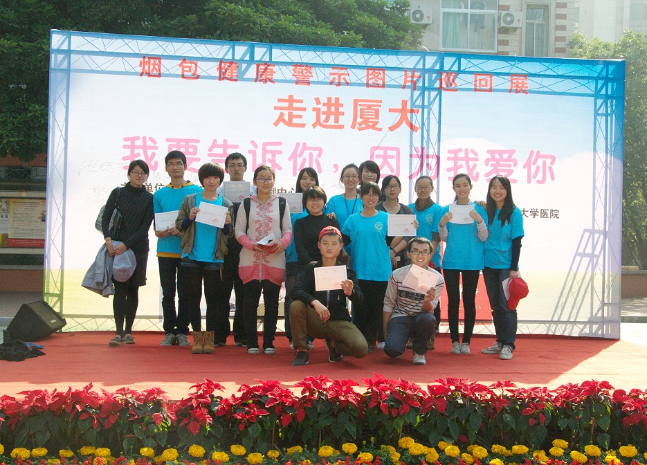 2012年12月14日中午,由厦门市疾病预防控制中心主办,厦大禁烟领导小组办公室、厦大资产处、厦大医院联合承办,厦门大学外文学院青协协办的“我要告诉你,因为我爱你”大型禁烟宣传活动在厦门大学三家村广场热烈举行。尽管天气炎热,同学们热情不减,在志愿者们的组织领导下,各项活动有序开展。本次活动通过海报展览、现场咨询、集体签名、服装走秀、话剧演出等形式,生动形象地展示了吸烟的危害,增长了参观者的相关健康知识,赢得了前来参观者的一致好评。