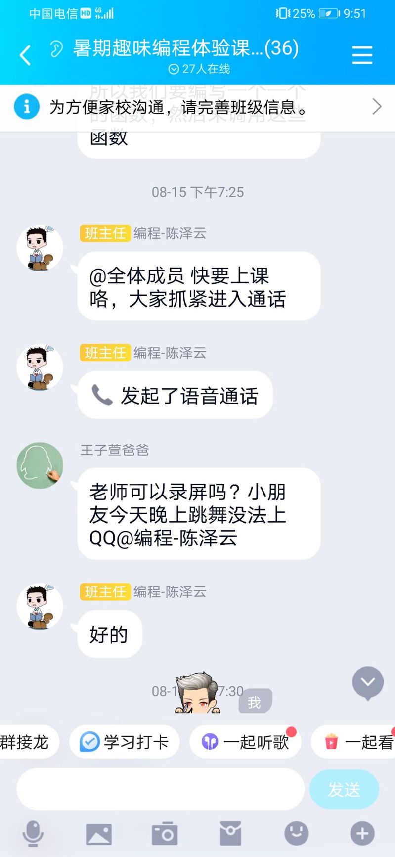 实践过程中,大家分工合作,编程教学活动进行得井然有序。负责教学工作的同学,在课前会对教学的内容进行深度的学习,并整理出教学大纲,以便课上能够进行科学合理的教学;负责课后答疑的同学,则需要跟进每节课的教学内容,在线上为孩子们进行疑难解答;负责宣传的同学,每节课都会准时跟进课堂内容并获取课堂截图,在课后将其写入微信推文,以进行宣传推广。