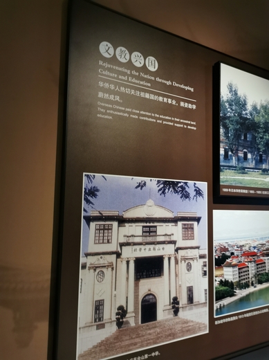 随后,实践队来到展览厅二楼,了解华侨华人的生活习俗与文化发展历程。华侨是中外文化交流的使者,一方面,保持自我,办华文学校、开华文报馆,保留祖国语言文字、传统礼俗和伦理道德,让中华文化在异国他乡得以延续和发展;另一方面学习和吸收当地文化、西方文化的养分,彼此相互影响、渗透和补益。逐渐与当地居民融为一体,共同创建美好的生活。