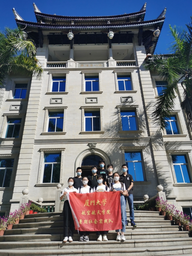 为深入学习贯彻习近平新时代中国特色社会主义思想和习近平总书记对广大青年的五四寄语,增强“四个意识”、坚定“四个自信”、做到“两个维护”,开展“四史”专题教育,生动感悟时代赋予青年的历史使命,怀爱国之情、立报国之志、弘扬“嘉庚精神”,以实际行动在党和人民最需要的地方贡献力量,2020年8月13日,厦门大学航空航天学院“华侨记忆”暑期社会实践队来到厦门市华侨博物院参观学习,了解文化历史、领会华侨精神。该实践队由航空航天学院飞动机械本科生党支部9名成员组成,包含1名正式党员、5名预备党员、3名入党积极分子。