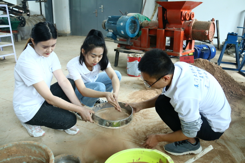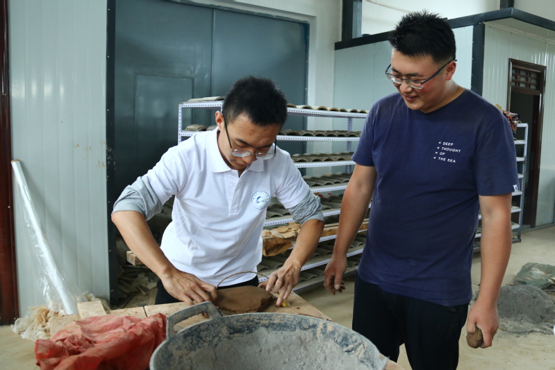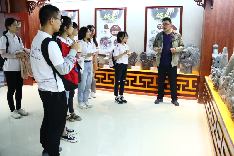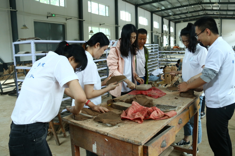5日上午,实践队一行来到魏氏砖雕有限公司参与砖雕制作劳动。魏氏砖雕是国家级非物质文化遗产,经过百年的传承与发展,现已成为隆德县扶贫致富的排头兵。在第五代传承人魏亚龙的指导带领下,实践队员了解了“软雕”“硬雕”等制作工序,并进入扶贫车间,参与到筛土成泥、捣泥成质、摔泥入模、酿泥成形的劳动过程中。看着一个个带着复古花纹的瓦片在手中诞生,同学们满富成就感地说道“虽然我们不能像熟练的工人一样,在两分钟不到的时间里便制作出一片雕花精美的瓦片,但也领会到劳动者的‘工匠精神’了!”实践队员们深刻地体会到了劳动创造的幸福感,认识到“出力流汗”才能创造价值,“动手动脑”方能实现价值。