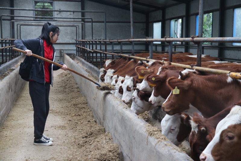 6日,实践队来到了沙塘镇张树村,在村第一书记胡雄的带领下,观农机、进牛棚、下田地,深入农牧业生产建设,深化劳动教育实践。牛棚里,队员们积极学习如何饲养牛群,并尝试拿起钉耙将饲料扬至饲料槽,亲身体验了畜牧饲养员的日常工作;烟雨朦胧中,实践队员们仍坚持进入地滑泥深的蚕豆地采摘蚕豆,在半人高的豆秆间摸索前行、辨别豆质、弯腰采摘,满载而归。队员们表示,虽然是第一次参与田间劳作,也早已分不清身上是汗还是雨,但满满当当的蚕豆带来的满足与成就却足以将疲惫抛诸脑后。返程途中,队员们兴奋地分享了田间劳作带来的别样体验,也对“劳动光荣,创造伟大”有了更为直观深刻的理解。
