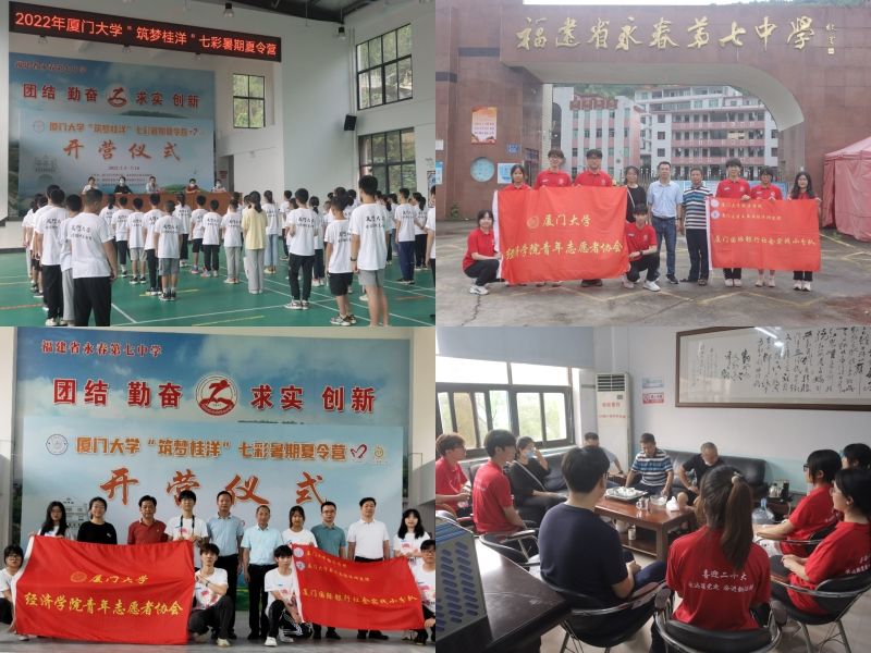 第一天上午,“筑梦桂洋”暑期支教夏令营举行开营仪式。桂洋镇党委书记姚剑平和永春七中校领导致辞,表达了永春县第七中学对厦门大学“筑梦桂洋”暑期夏令营活动的认可与感谢。随后,厦门大学经济学院青年志愿者协会陈凌老师致辞,对同学们的暑期求学之心表示鼓励,同时表达了经济学院对于乡村支教夏令营的重视与支持。