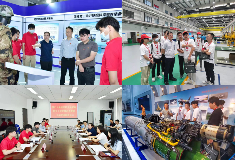 在贵阳期间,实践队先后走访中国航发贵州黎阳航空动力有限公司、中国航发贵阳发动机设计研究所、中国航天科工集团第十研究院等单位,相关企业热情接待了实践队一行。7月11日,实践队来到黎阳航空动力有限公司,企业相关部门负责人向实践队员介绍了航空发动机的发展历程及企业价值理念与责任使命。实践队员在企业工程师的带领下深入航空发动机生产一线,参观发动机总体事业部、机闸制造分厂、工装分具厂、结构件分厂、压片机事业部、热表处理分厂等部门,接受了一堂深刻的专业劳动教育。在与企业工程师的交流探讨中,队员们进一步加深对航空发动机这一高精尖大国重器的认识。7月12日,实践队走访中国航发贵阳发动机设计研究所,研究所综合管理部部长马岚及专业技术骨干唐磊与实践队成员开展座谈交流,马岚介绍了研究所发展情况及对各类人才的需求,希望能有更多厦门大学学子前往就业;唐磊为实践队员讲解了小型推力涡喷、涡扇发动机产品研发流程并讲述了研发过程中的重点难点,队员们与企业工作人员积极互动并对技术重难点展开热烈讨论。7月13日,实践队参访中国航天科工集团第十研究院,在研究院人力资源部人事处处长肖忠英陪同下,参观了航天十院“专精特新”成果推介月展览,展厅内企业为航空、航天、船舶、电子等行业研发生产的精密控制器、传感器等设备让队员们频频驻足赞叹。随后在与企业交流座谈中,实践队员就各自的研究方向与企业代表进行了深入交流。通过走访企业,队员们不仅感受到一代代航空航天人为国奉献的情怀,也充分认识到当今时代掌握关键核心技术的重要性以及专业技术人才在现阶段企业发展中的紧缺性,更加清晰了自身的专业定位。