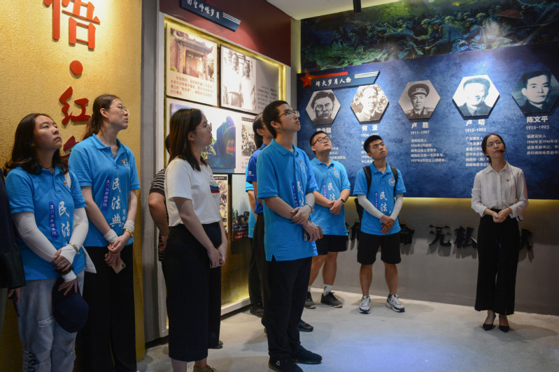“青年党员要认真学习马克思主义理论,结合学习党史、新中国史、改革开放史、社会主义发展史,在学思践悟中坚定理想信念,在奋发有为中践行初心使命。”为深入推进“四史”学习教育,将习近平总书记的殷殷嘱托转化为普法路上砥砺前行的不竭动力,8月1日建军节这天,“典”入民心暑期社会实践队临时党支部组织举行了“学四史·守初心·担使命”主题党日活动。循着革命先辈的足迹,实践队员们走进乌山,参观了播撒闽南革命火种的中央闽南地委机关旧址和闽南乌山老游击队员之家、月港事件纪念馆等地,大家翻山越岭,以重走红军路的方式重温历史,缅怀先辈,深切体会中国共产党人伟大的革命精神,感悟共产党人矢志不渝的初心使命。当晚,实践队顺利返回厦门,在法学院220会议室举行“四史”学习教育主题党课。实践队员们分别从学习党史、新中国史、改革开放史和社会主义发展史的角度,结合三天诏安宣讲实践的收获畅谈学习心得。实践队临时党支部书记徐瑞祥在总结发言中谈到,希望全天充实的党日活动能够帮助大家进一步感悟初心使命,在未来的民法典宣讲中更好地担当青年党员的职责使命,实现“四史”学习学深悟透,入脑入心。