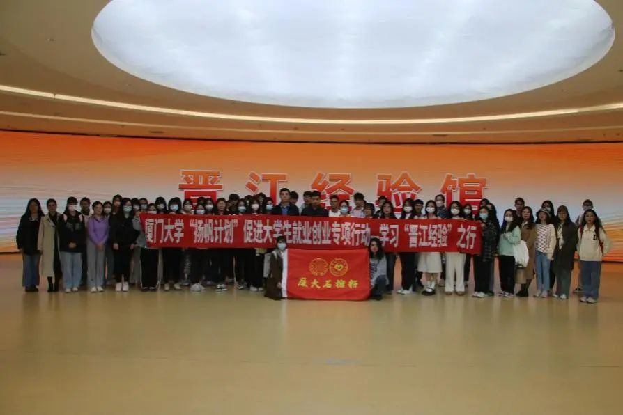 3月11日,厦门大学团委开展“扬帆计划”促进大学生就业创业专项行动——学习“晋江经验”之行,以“校地共建谱新篇,青春聚力促发展”为主题,组织包括少数民族、港澳台生在内的六十余位厦门大学应届博硕士生、本科生来到晋江,深入学习“晋江经验”,了解这片神奇土地经历的历史变迁。在晋江“人才强市”政策的号召下,进一步加强校地合作,让更多人才来到晋江、了解晋江、留在晋江,让这片包容开放的土地更加充满活力。