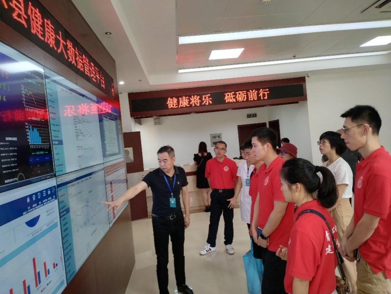 将乐县总医院聂立雄院长(主持工作)及全民未病健康部负责人肖少辉副主任带领博士团参观了医院各科室,并重点介绍了将乐县健康大数据管理平台建设的总体情况及慢性病管理现状。队员们也结合学科知识,就数据采集、大数据安全管理等问题与负责人进行了充分交流,在交流中,队员们切身感受到基层医疗条件发生的巨大变化,也充分体会到基层医务工作者在这场改革中的重要作用。