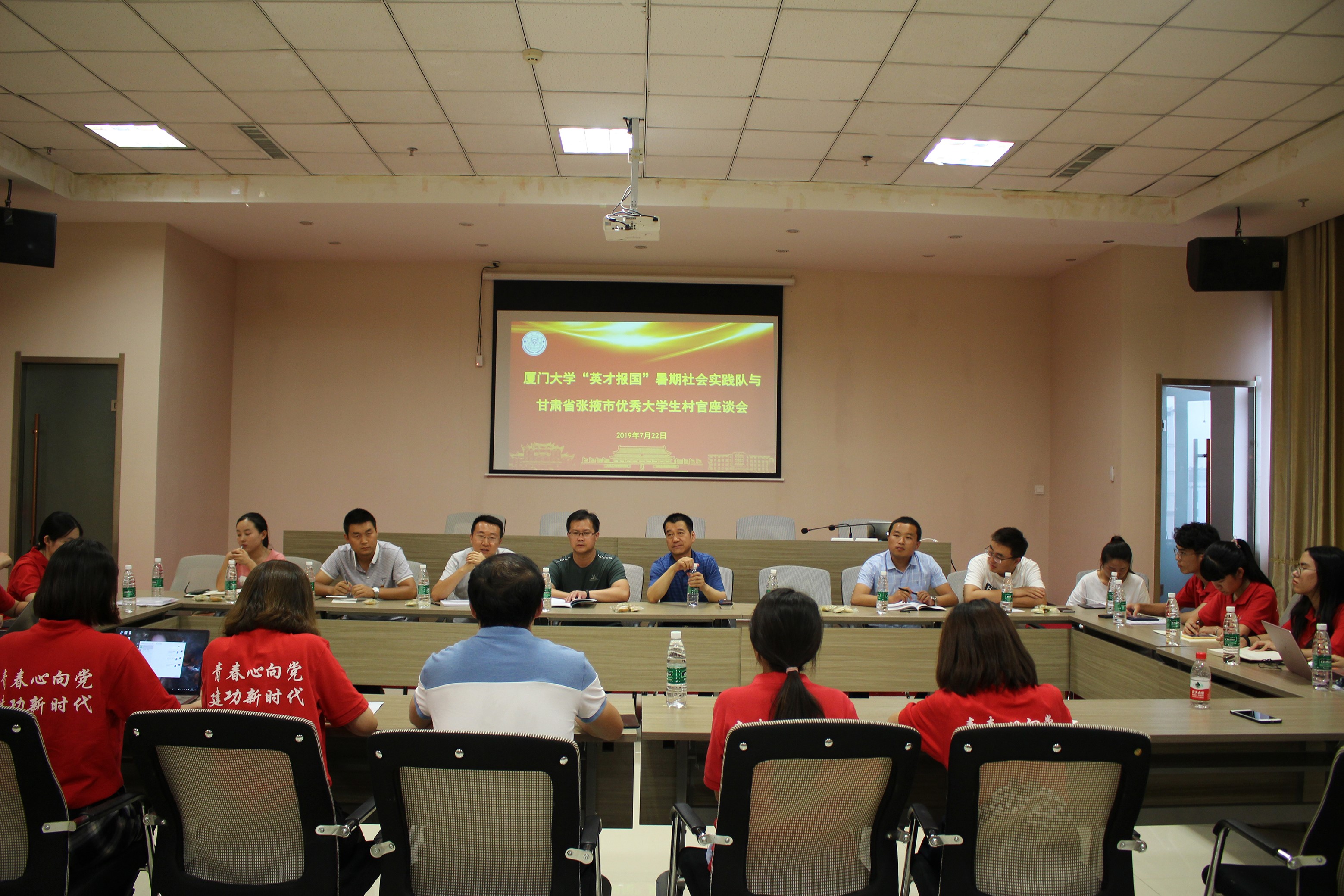 为探究西部地区基层政府部门建设与队伍构成情况,了解基层公务人员工作现状,挖掘高校毕业生基层工作模范事例,7月22日,厦门大学外文学院“英才报国”暑期社会实践队紧密围绕着“深入西部看发展,投身建设在基层”的实践主题,先后参访了张掖市三闸镇乡镇政府“七站八所”,并与张掖市优秀大学生村官座谈。