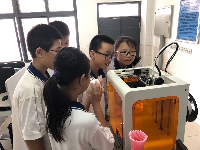 3D打印机前同学们等待着作品完成