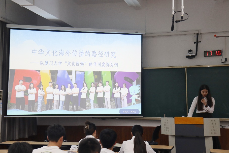厦门大学“颉颃计划”代表凌泉灵同学以其详实的分享内容为学员们讲述了“颉颃计划”的同学深入不同国家、投身社会实践,开拓视野的丰富历程。展现了厦大学子为宣传中华文化做出的努力与奋斗,以及为讲好中国故事、传播中国声音做出的尝试与贡献。
