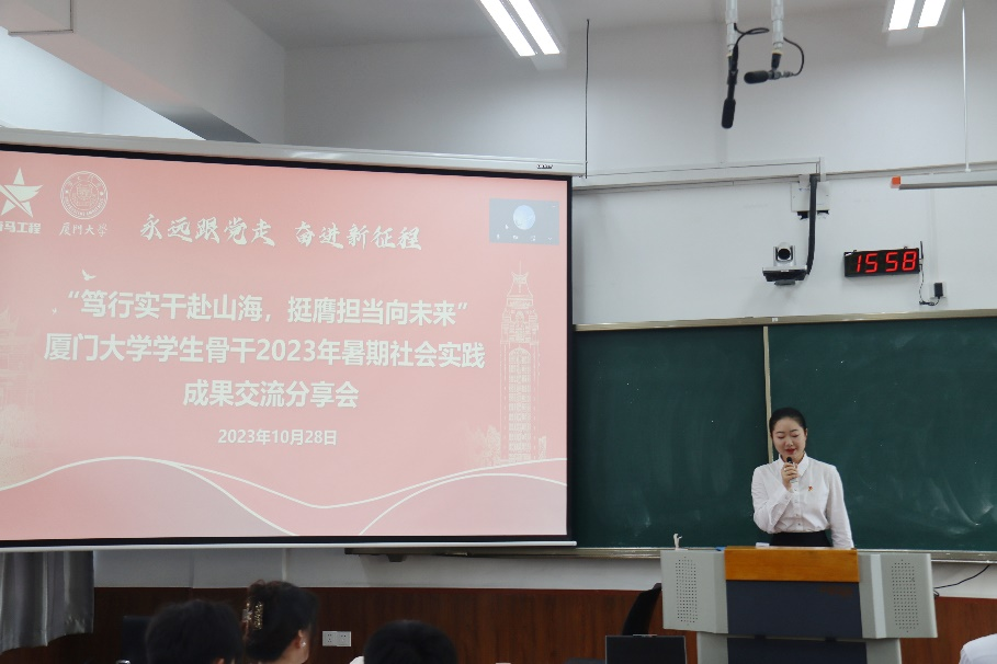 此次暑期社会实践成果交流分享会以实践经验分享为载体,既是厦门大学第二十一期“青马工程”大学生骨干培训班总结暑期社会实践经验、淬炼理论成果的重要契机,更为我校青年搭建了实践经验的分享与交流平台。下一步,厦门大学第二十一期“青马工程”大学生骨干培训班将继续深入学习贯彻党的二十大精神,扎实学习贯彻习近平新时代中国特色社会主义思想主题教育,认真学习习近平总书记关于调查研究的重要指示精神,引领各位学员立志做有理想、敢担当、能吃苦、肯奋斗的新时代好青年,在实践中锤炼过硬本领、锻炼担当能力,在全面推进中华民族伟大复兴的历史进程中书写更为绚丽夺目的青春篇章。