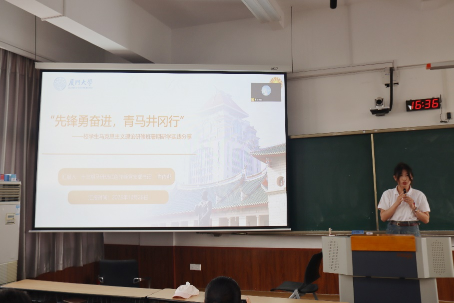 为深入学习贯彻党的二十大精神,扎实学习贯彻习近平新时代中国特色社会主义思想主题教育,认真学习习近平总书记关于调查研究的重要指示精神,让同学们在“行走的大思政课堂”中真切感受新时代的变化,10月28日下午,厦门大学第二十一期“青马工程”大学生骨干培训班于庄汉水楼503举办“笃行实干赴山海,挺膺担当向未来”厦门大学学生骨干2023年暑期社会实践成果交流分享会。第十三期“学生马克思主义理论研修班”代表、第二期“石榴籽”学生骨干培训班代表、厦门大学“颉颃计划”代表、“行远”港澳台学生骨干培养计划代表、第五期“扬才先锋”学生党支部书记培养计划代表以及第二十一期“青马工程”大学生骨干培训班全体成员共同参与分享学习。
