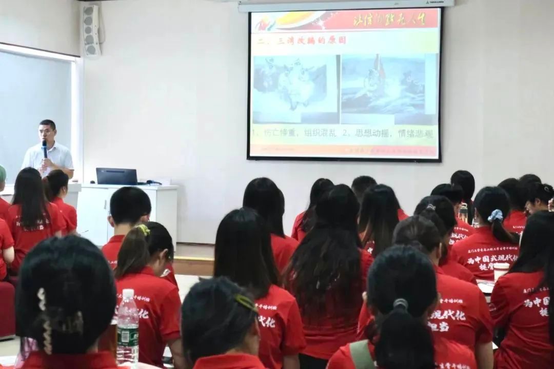7月24日上午,实践活动开班式在全国青少年井冈山革命传统教育基地综合楼307教室举行。基地管理中心宣传推广处副处长马婧,厦门大学团委副书记周林琪,中心带班老师王滢,以及全体带队老师和学员参加本次仪式。仪式由学员邸子瀛主持。