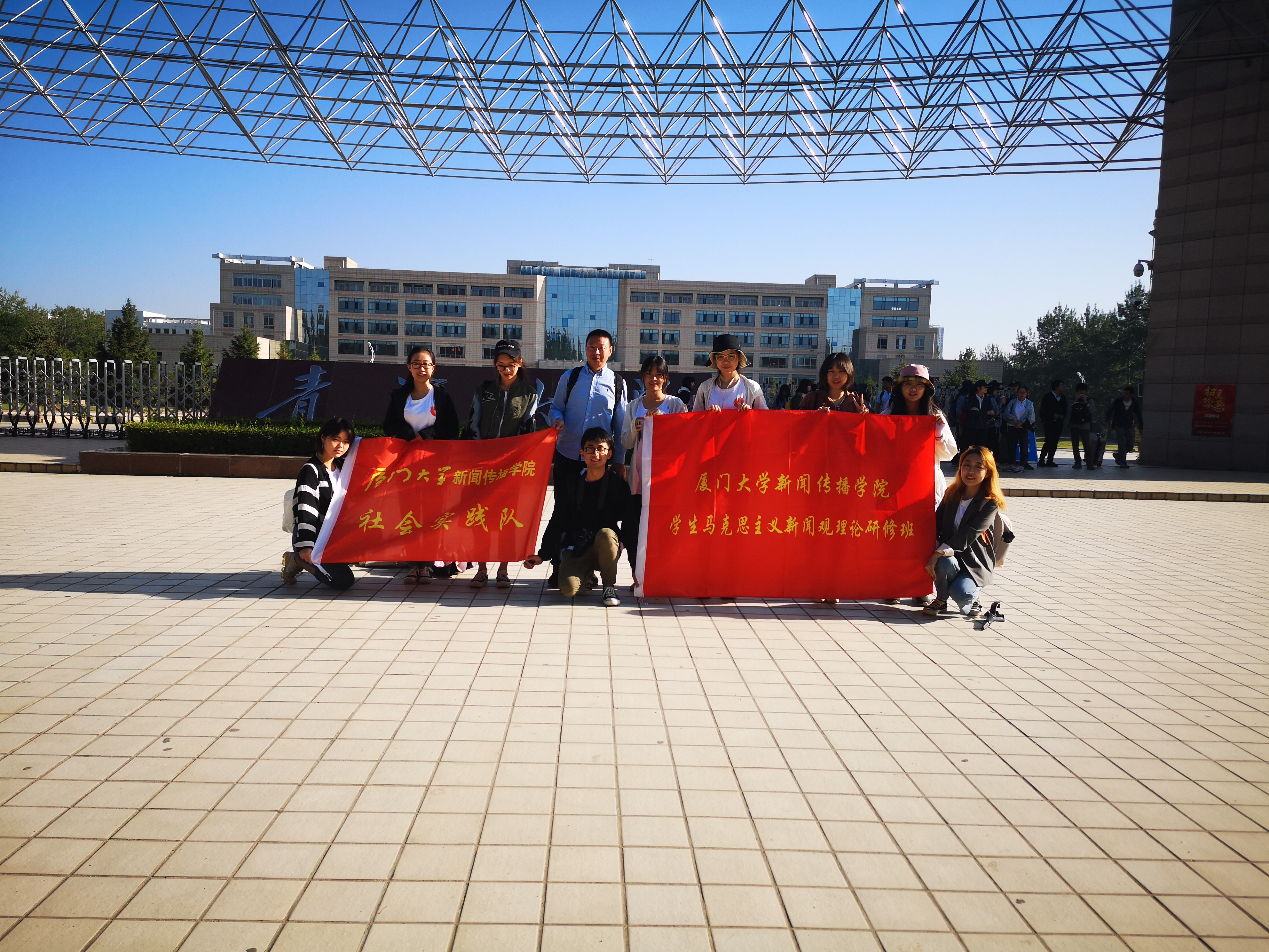 实践队一行在青海大学校门口合影