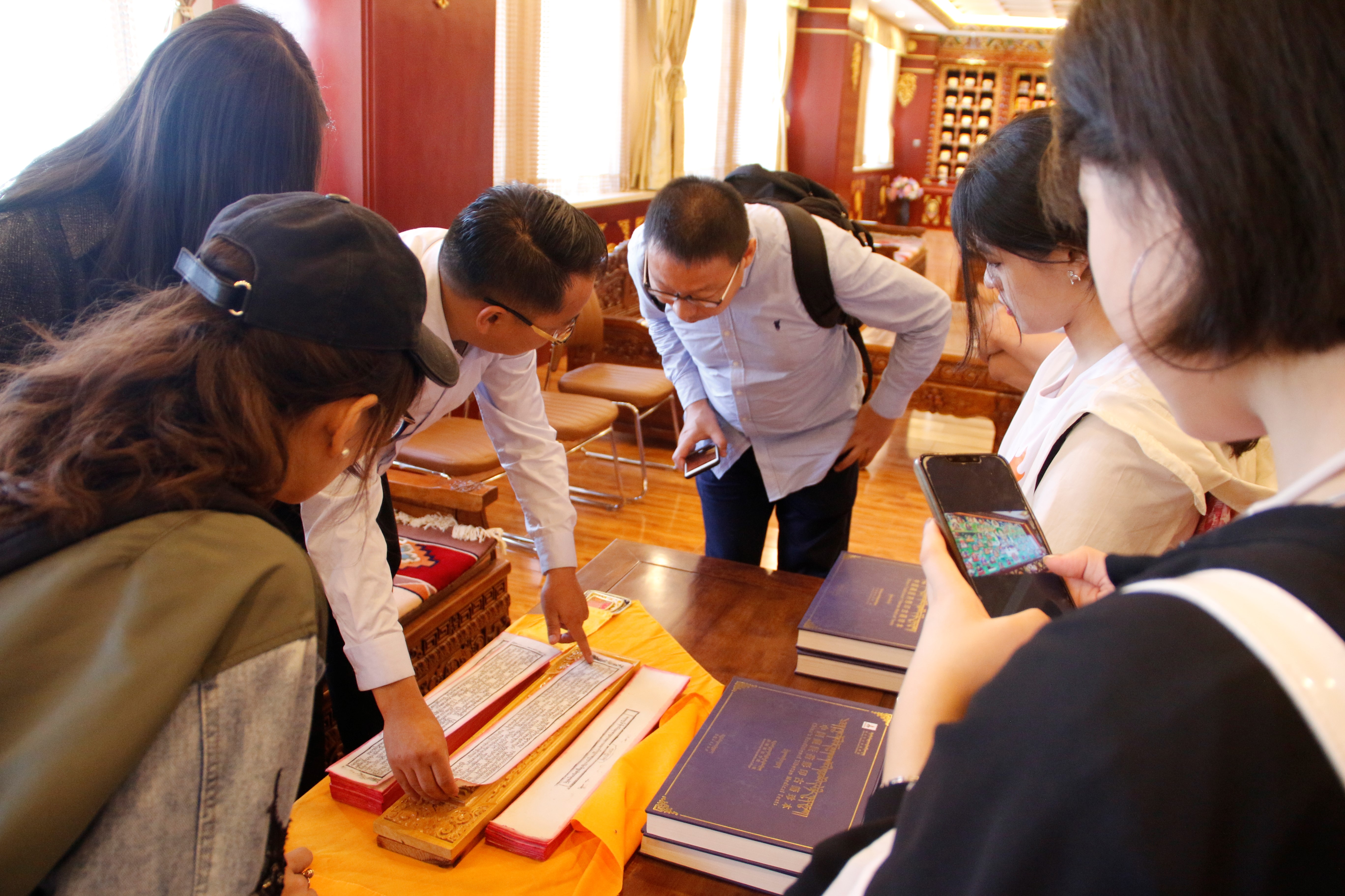 藏医学院老师展示雕版印刷的医典