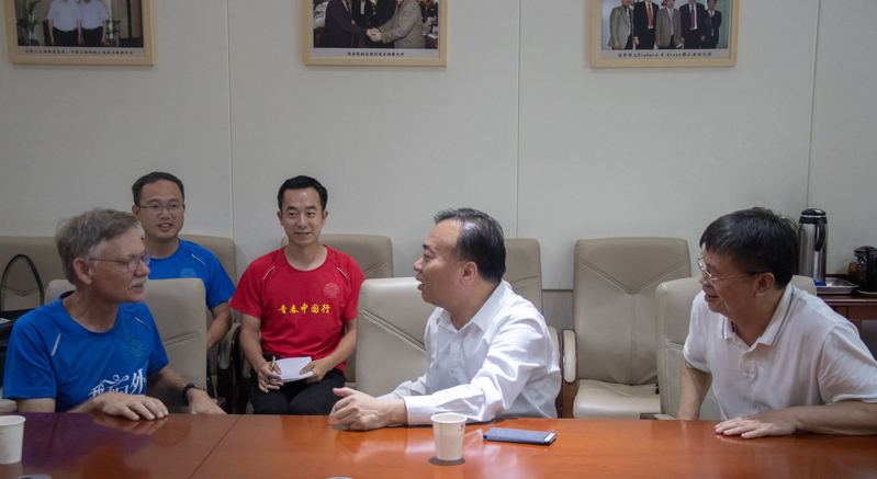 2019年7月13日晚,校党委书记张彦一行前往西安高新区,看望慰问了正在当地开展“我不见外-老潘重走中国”活动的潘维廉教授以及“青春中国行”实践队全体师生。