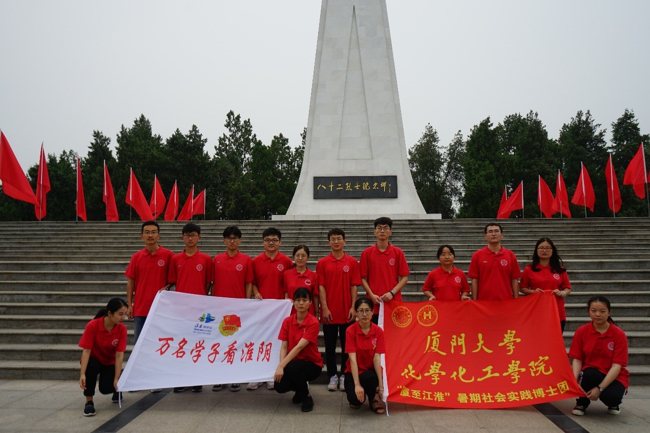 注:化学化工学院“厦至江淮”社会实践博士团是在厦门大学化学化工学院党委和淮安市淮阴区委组织部、团区委等部门的关怀指导下成立的,是瞄准国家战略需求、服务地方经济发展的博士团。
