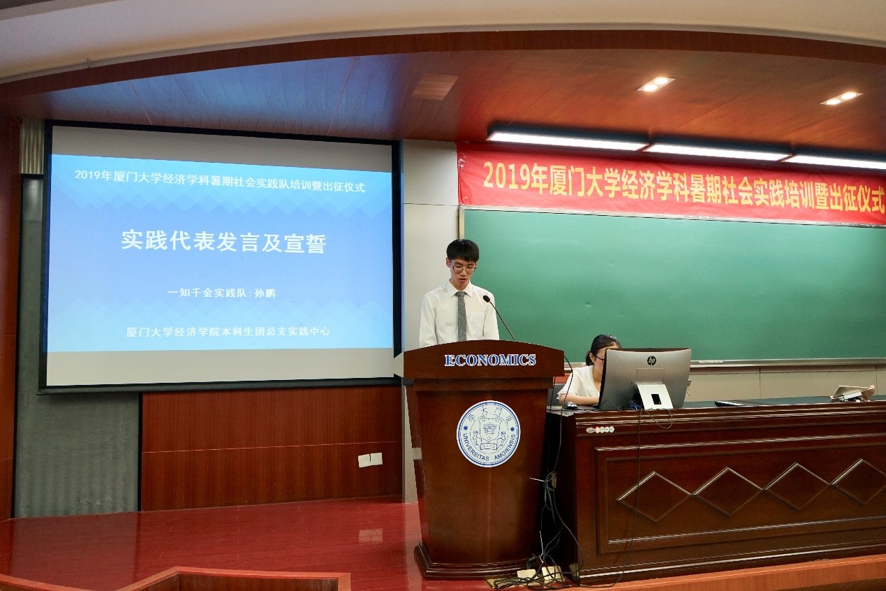 为深入学习贯彻党的十九大精神,引导大学生在社会实践中深化对“中国梦”的理解认识,充分调动广大青年参与社会实践的积极性, 2019年厦门大学经济学科“厦门国际银行”暑期社会实践队培训暨出征仪式于6月28日19:30在经济学院N302教室顺利召开。经济学院团委书记何丽苹,辅导员刘慧、王华、徐惠聪、蔡庆淞出席了本次活动。