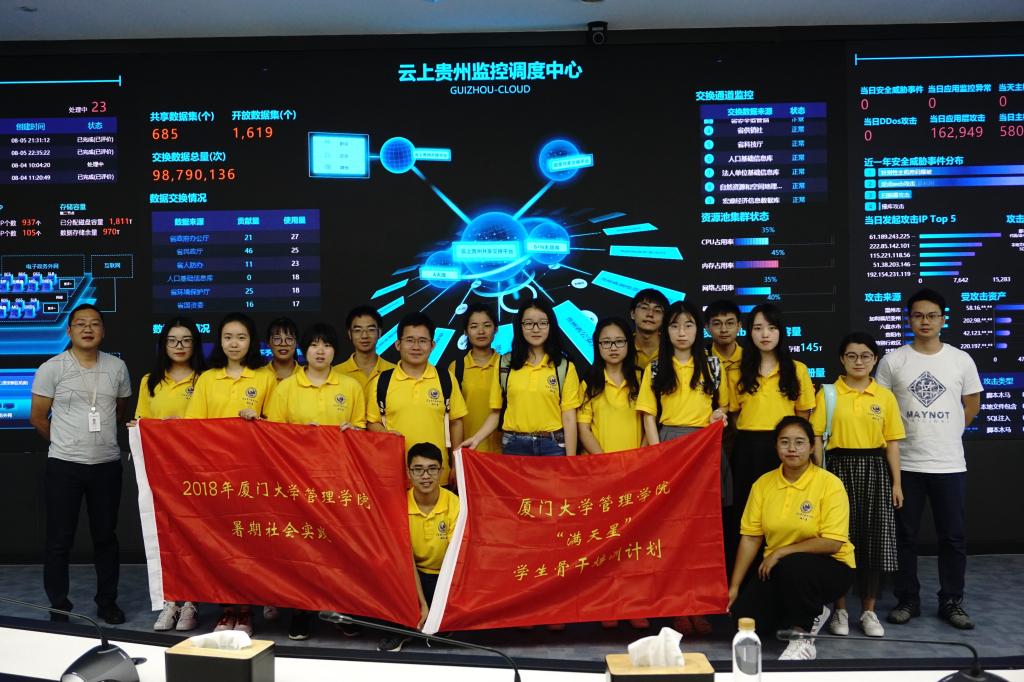 为深入贯彻落实习近平新时代中国特色社会主义思想和党的十九大精神,深入推进“不忘初心,牢记使命”主题教育实践活动,充分展现“双一流”高校学子服务地方经济发展的突出优势,7月29日至8月6日,厦门大学“学习之路”实践团“筑梦云端”实践队在管理学院辅导员邵亢邑、刘晓宇的带领下,学习习近平总书记对于国家创新战略的重要指示精神,远赴贵州开展大数据产业发展以及理想信念教育的专题调研实践活动。