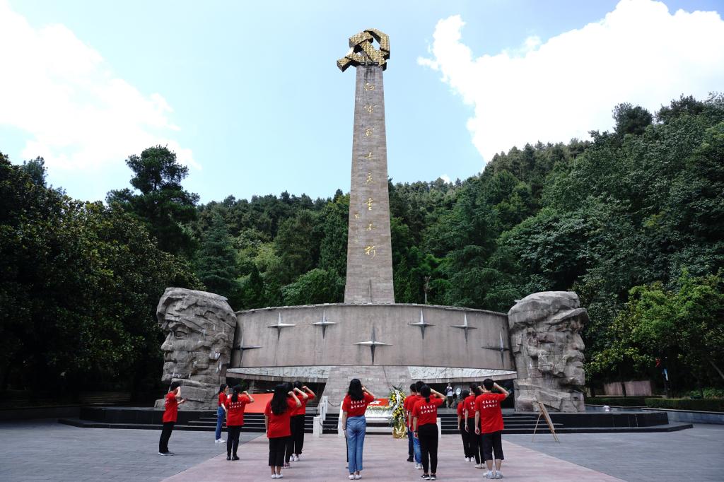 在此次实践过程中,实践队组建临时党支部,将党员信仰体现在实践全程中,将“不忘初心,牢记使命”根植在师生心间里。在红军山红军革命烈士纪念碑前,全体师生为红军烈士敬献花篮并重温入党誓词,学习革命先烈坚定理想信念、勇于牺牲的崇高品质,“我志愿加入中国共产党”……洪亮的入党誓词飘扬在烈士纪念碑前,使师生党员时刻铭记入党初心;在遵义会议纪念馆中,党员师生自觉学习习近平总书记系列重要讲话精神,保持家国情怀,坚定为国理想。实践队全体师生在云贵高原吹响了“两学一做”常态化制度化的号角。