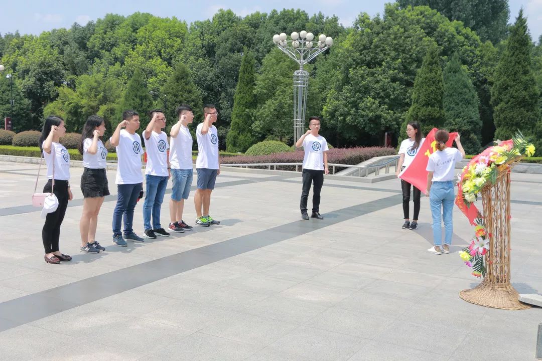 山山埋忠骨,岭岭皆丰碑,村村有烈士。为了中国的革命,红安牺牲了14万人,占全县人口的三分之一。在黄麻起义和鄂豫皖苏区纪念园,刘长青老师带领实践队的七位党员庄严地重温入党誓词,理顺挽联、敬献花篮,实践队全体成员三鞠躬,深切缅怀革命烈士。