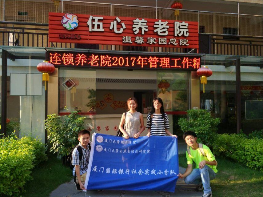 经过一个多小时的车程,“厦门国际银行”厦门大学经济学院、王亚南经济研究院 “e养天年”实践队的第三站,来到了伍心养老院。伍心养老院是隶属厦门民政局管辖的民办养老院,该院采用医养结合的模式,于2016年成立,运营两年有余,目前养老院有1200多个床位,100多位来自五湖四海的老人在这里入住。