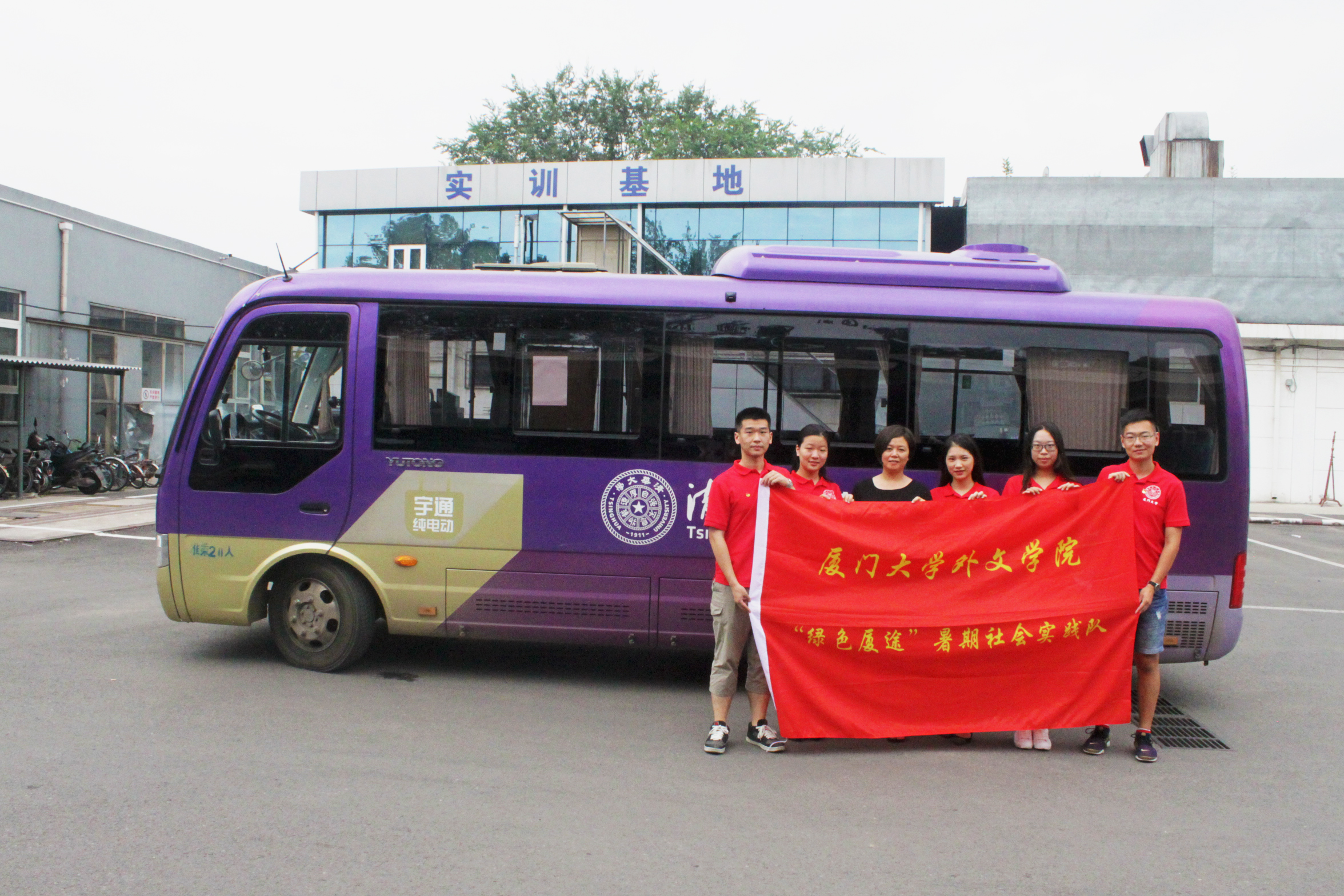 7月22日下午,实践队抵达清华大学。在前期收集资料时,队员们了解到,早在2000年,清华大学便引进了第一批电动校车。十年来,电动校车换了三代,清华大学也始终处于高校绿色交通先锋队的位置,这也是“绿色厦途”实践队把实地调研的最后一站置于北京的原因。在清华大学期间,通过发放问卷、多方采访和亲身感受,队员们了解了校车的运行线路和时间、校车的管理和养护办法、校内人员的使用情况等,保留了大量的数据和影像资料。