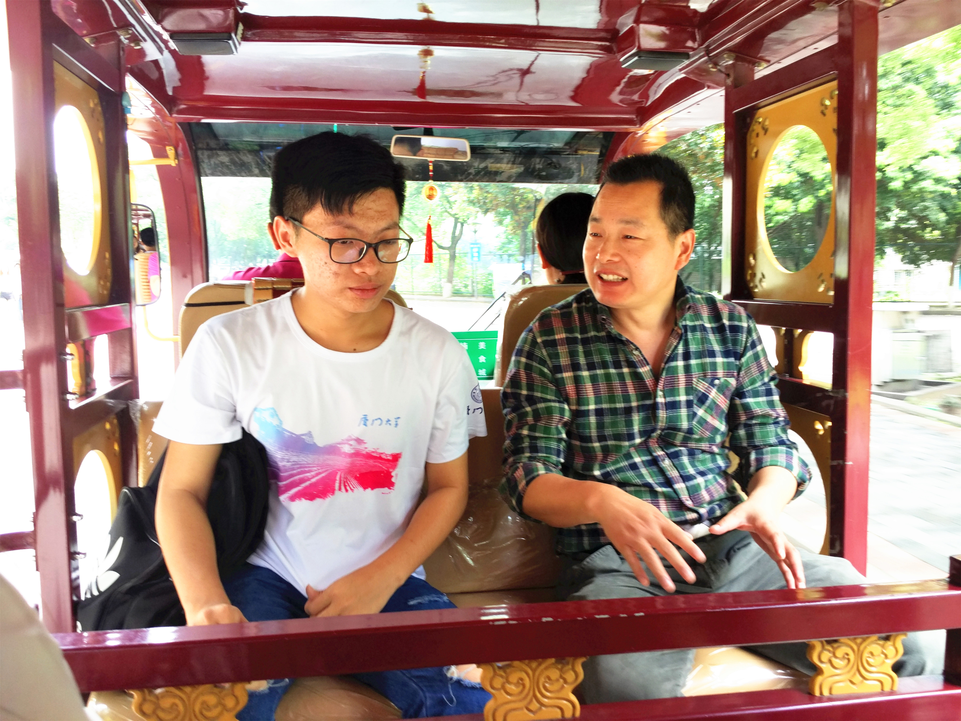 队员们在西南大学乘坐校园观光车并采访工作人员
