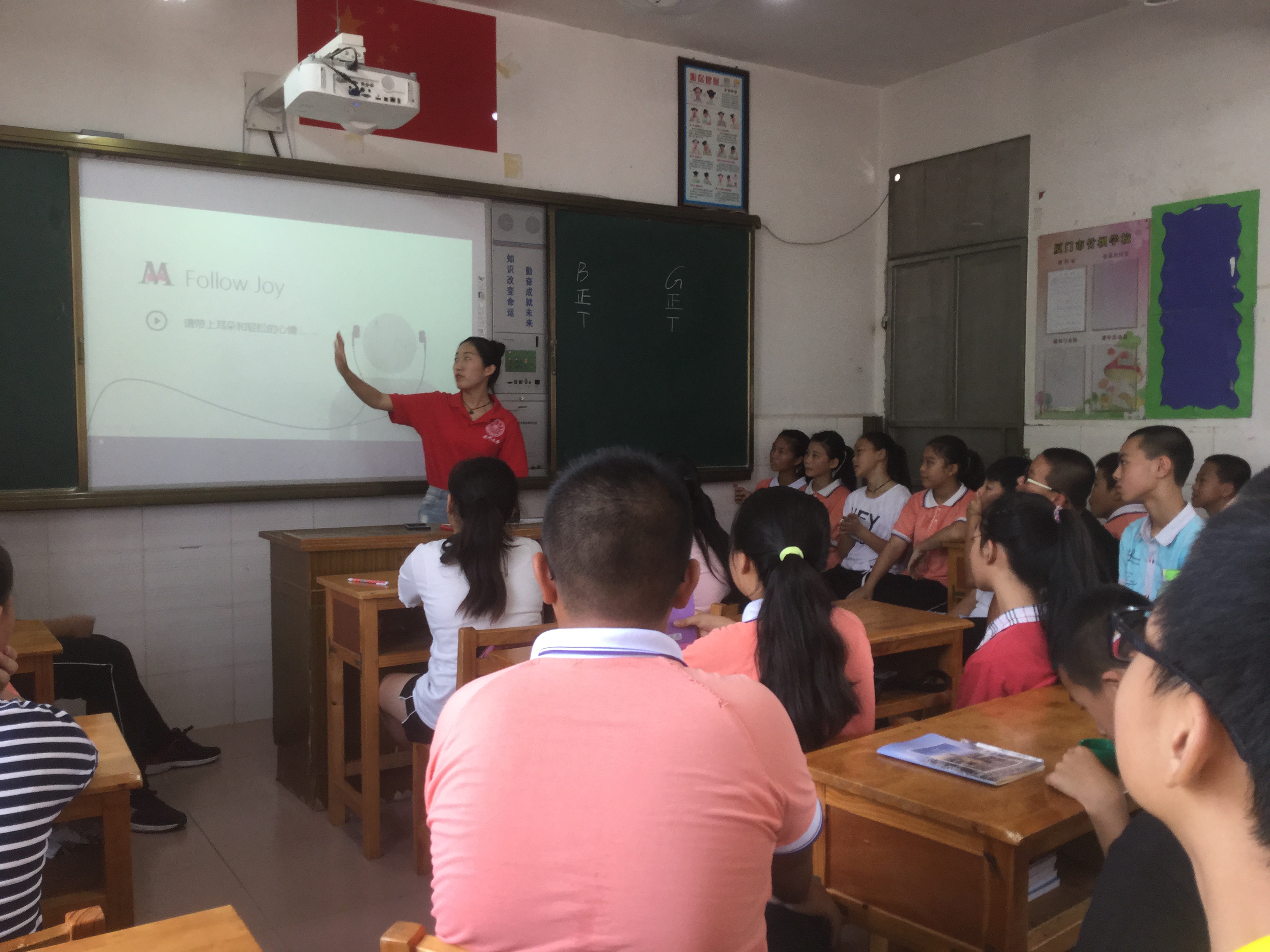第九届金砖国家领导人会晤举行在即,为开拓学生视野、做好迎宾小主人,实践队支教组为学生们准备了一节介绍金砖五国文化的课程。课程内容涉及巴西、俄罗斯、印度、中国及南非的文化,其中重点介绍俄罗斯的文化并教授简单的俄语口语。在俄语专业队员的带领下,学生们齐声朗读、积极发言。课后学生们仍兴趣不减,争先向队员询问有关俄罗斯和金砖会议的问题。主动思考,善于发问,这样的风采风貌,正是时代对于他们的期望。