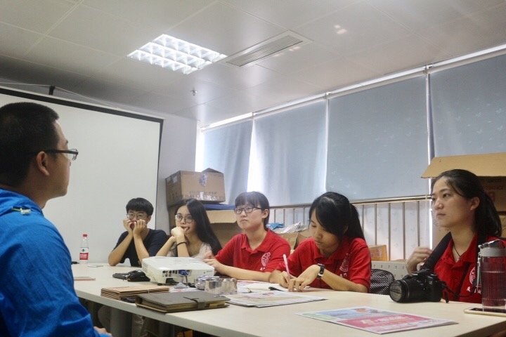 7月25日下午,实践队来到广州日报集团旗下的羊城地铁报社,受到了工作人员的热情接待。M+首席产品官罗敏、新闻部主任翁淳桢为我们介绍了《羊城地铁报》的概况与发展历程,以及最新产品“M+线下体验店”的概况;新媒体首席运营官黄曼霞为我们讲述了新媒体时代下的纸媒如何通过微信、微博等方式与读者产生互动;品牌市场部冯雪琪为我们介绍了品牌活动策划对新纸媒行业的重要性。这次访谈让实践队员们初次接触了纸媒行业的运作情况,感受到免费地铁报的创新思维在信息时代的重要性。